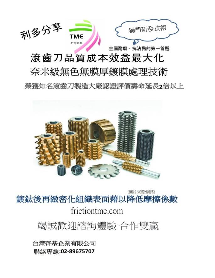 獨家研發奈米級金屬耐磨耗、低沾黏表面處理之關鍵技術